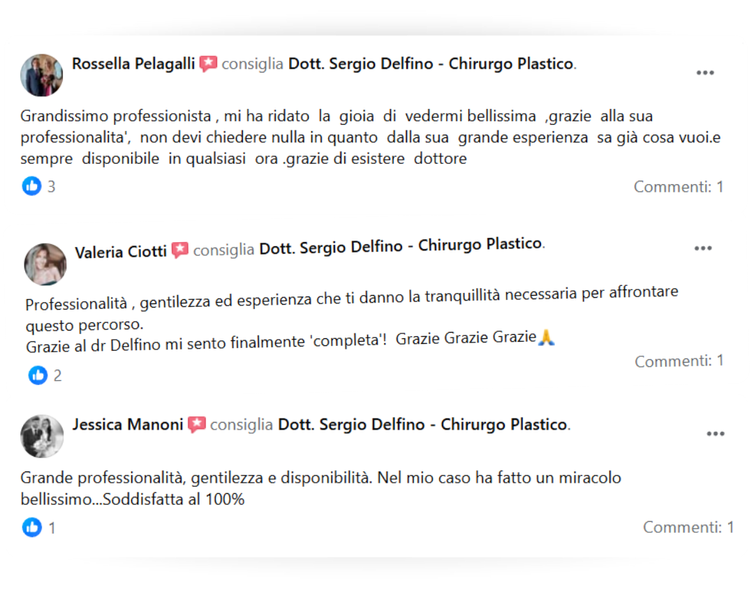 Mi sono affidata al Dott. Delfino per un intervento di mastopessi additiva e posso dire con assoluta sincerità che è stata una delle migliori decisioni che abbia mai preso.
